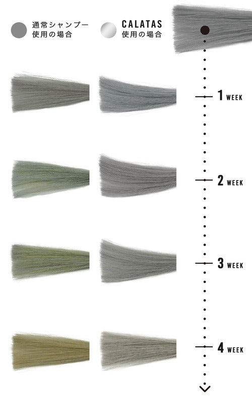 【複数のアミノ酸配合】 CALATAS HEAT CAREはカラーシャンプー・カラートリートメントとして染料を使用してのヘアカラーの褪色や黄ばみなどを抑える効果だけでなく、シャンプーとトリートメントそのものの処方ベースを再度開発し、複数のアミノ酸を配合してヘアカラーが落ちにくいシャンプーとトリートメントのベースに仕上げたことで、今までのCALATASよりも更に褪色を抑えられる処方になりました。 【white jasmine】